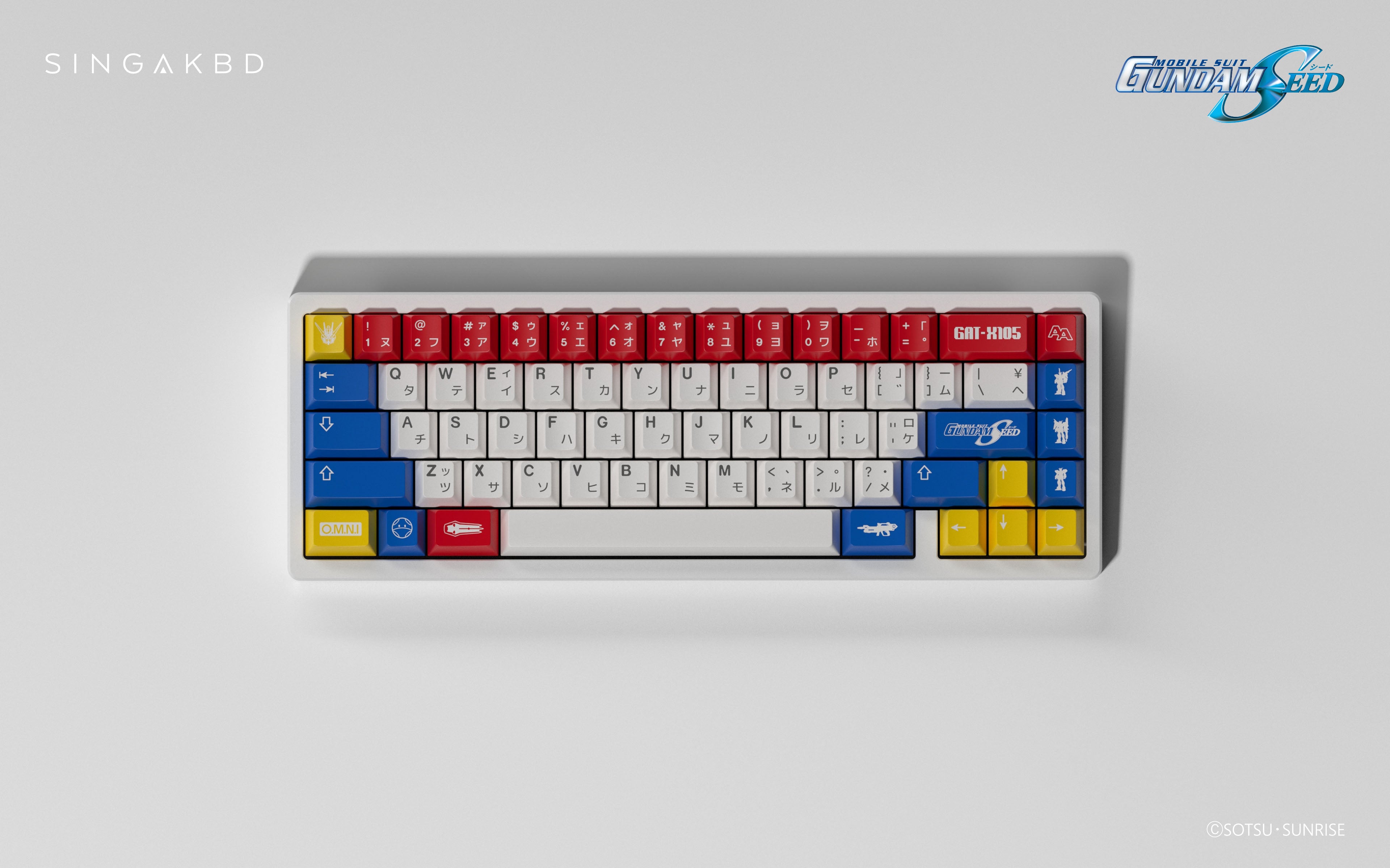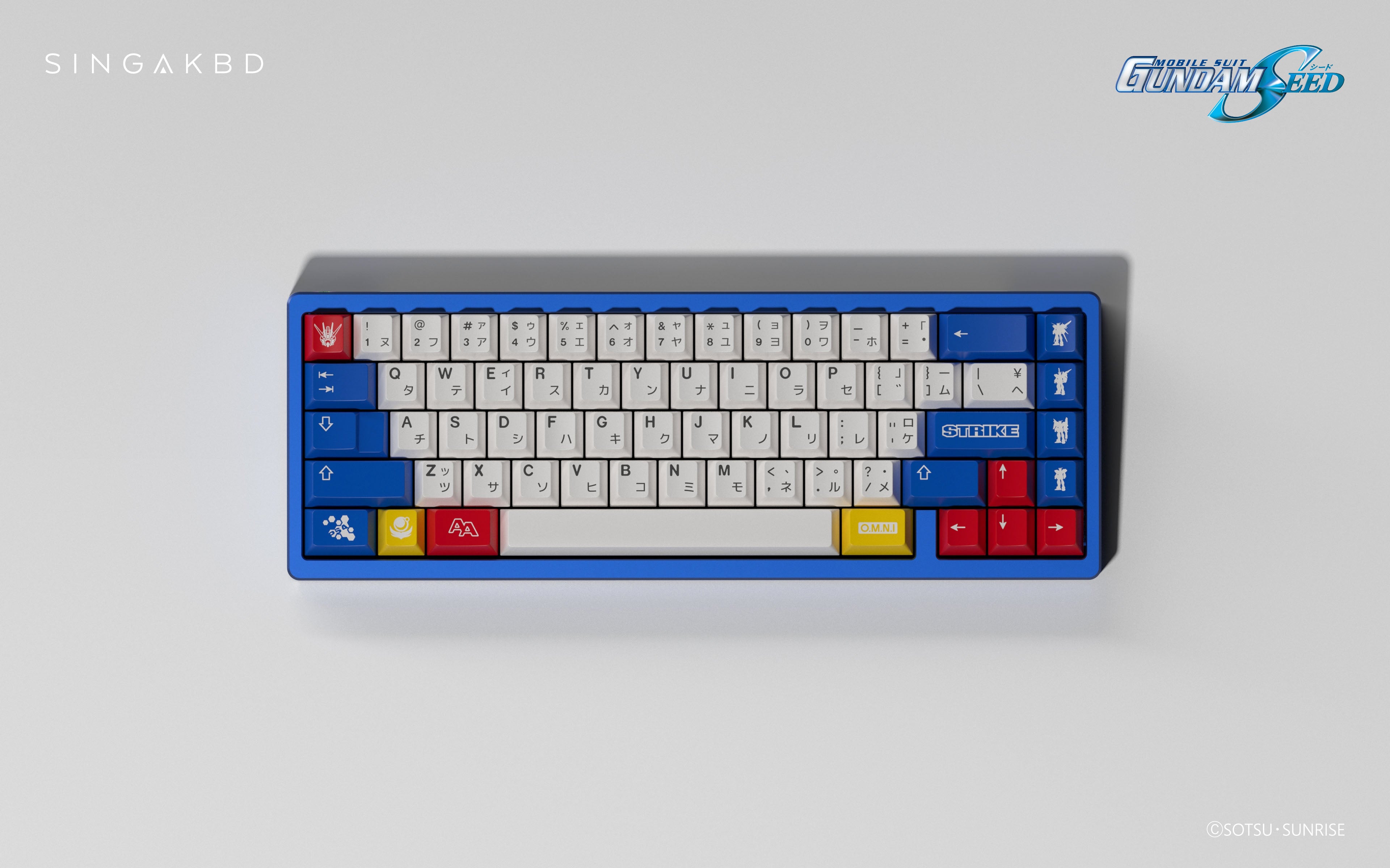 Discover the GAT-X105 Strike Edition Keycap Set, a celebration of Mobile Suit Gundam SEED's iconic Strike Gundam and the perfect match to the GUNDAMHAKU keyboard from SINGAKBD.